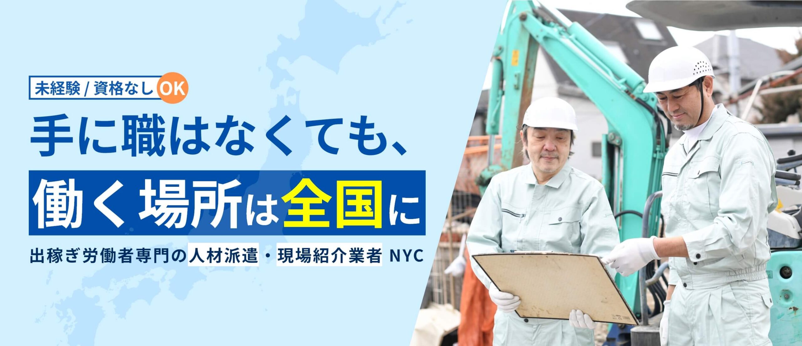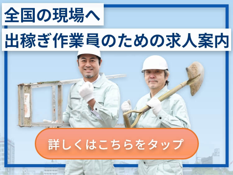 出稼ぎ労働者専門の人材派遣・現場紹介業として、全国の建設・土木・解体・設備など、幅広い現場で働ける仕事を紹介しています。